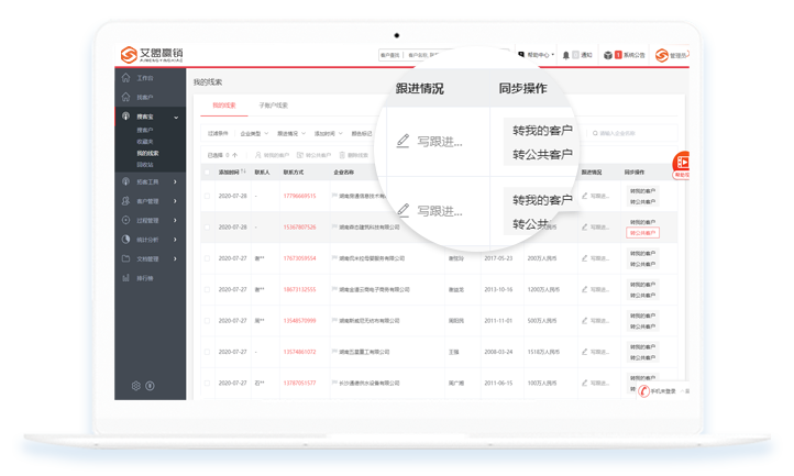 讓通過驗證的銷售線索自動轉成客戶進入CRM,利用CRM的客戶管理功能實現(xiàn)客戶的后續(xù)跟進成單,降低銷售使用成本,實時同步跟進信息,實現(xiàn)銷售閉環(huán)。